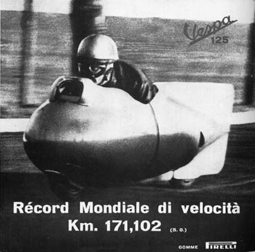L'impatto dei records mondiali conquistati dalla Lambretta non poteva lasciare indifferente la Piaggio che scende in campo nella primavera del 1950 sulla pista di Montlhèry per strappare alla Lambretta i records stabiliti su quella stessa pista in febbraio e poi sposta la lotta sul record assoluto.