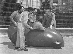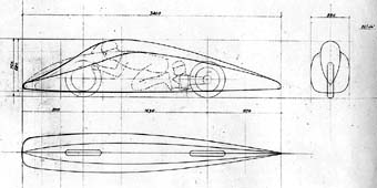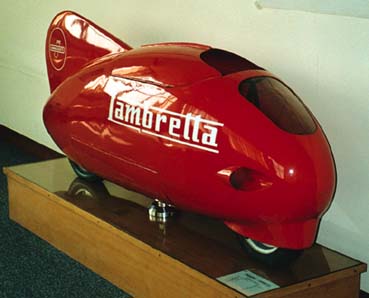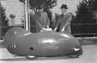 La Innocenti, come abbiamo detto, si stava da tempo preparando per il record sul chilometro lanciato e, dopo essere stata anticipata dalla Piaggio, intensifica gli sforzi per battere la rivale. In base a studi fatti su diverse forme aerodinamiche (che illustriamo nei disegni riportati), è stata scelta inizialmente una soluzione con il pilota sdraiato simile a quella che avrebbe successivamente utilizzato Baumm alla NSU. Ne viene realizzato un prototipo che è provato da Rizzi a Monza ma si rivela difficile da guidare e viene scartato. Si ritorna allora su una soluzione con il pilota rannicchiato ma sempre a cavalcioni. Questa soluzione comporta però una maggiore resistenza all'avanzamento ed è necessario incrementare la potenza del motore. Le prove per il record con il prototipo definitivo venivano effettuate alle cinque del mattino sull'autostrada Bergamo-Brescia in un tratto vicino ad Ospitaletto.