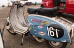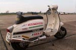 Standard Mark one cylinder, tuned to version two cylinder spec. Cylinder head 12:1; Varitronic; 30mm PHBH power jet carb; JL race exhaust. Currently this scooter shows 18bhp on the dyno. Running different set ups, with different carbs and exhausts, the highest output achieved in terms of bhp has been 21.20bhp. Best top speed timed over a flying start at 79mph. This scooter runs Li pacemaker gearing, standard 15/46This is a test scooter, mainly we have tested the 7 port experimental cylinder. 10:1 cylinder head, JL race exhaust, 30mm phbh power jet carb. 18.20 bhp, best time over one quarter of a mile is 18.44 seconds, 65.22 mph. Best top speed timed over a flying start at 75mph. This scooter runs Li pacemaker gearing, standard 15/46 The last of our scooters is an Imola kitted scooter, with a top finger boost port welded into the cases, and then machined through to the cylinder. At the recent Santa pod scooter meeting we ran 16.89 at 74mph. At santa pod we beat almost all road going geared scooters, including the following scooters: